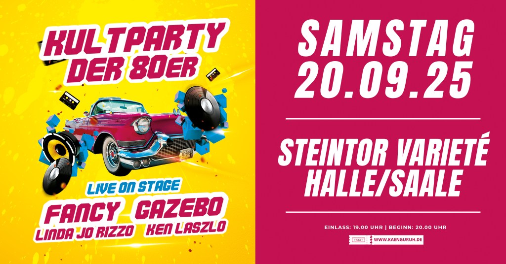 Sept. 20, 2025: „Kultparty der 80er“, Cult party of the 80’s together with Fancy, Gazebo and Ken Laszlo. TIckets: lec-ticket.de